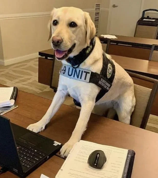 Ascii is certified in electronics detection. She is handled by D.A. Investigator Beers.